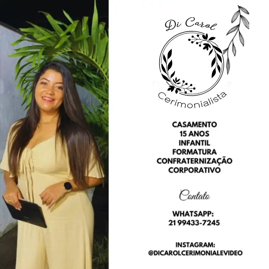 TUDO DEPENDE DE SER PERFEITO E MEMORÁVEL. COM A CAROL CERIMONIALISTA, O SEU MOMENTO SERÁ SEU ETERNAMENTE NA SUA MEMÓRIA COM O TOQUE EXTRA DE EMOÇÃO E TERNURA.